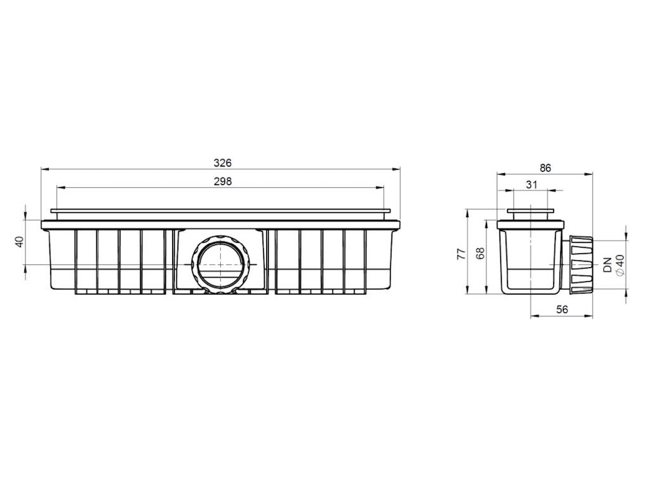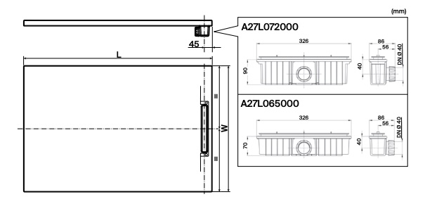 Desagüe rectangular estándar de altura 30mm.